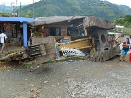 El líder comunitario relató que afortunadamente el conductor del taxi Pepe Vallejos, hijo de Marcos, no estaba en el taxi, como tampoco había personas en la vivienda, sin embargo el accidente deja cuantiosas pérdidas materiales porque se afectó el vehículo y las dos viviendas en donde cayó la retroexcavadora.