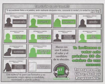 estructuras adelanta la entrega del “tarjetón de los valores” en el cual invita a