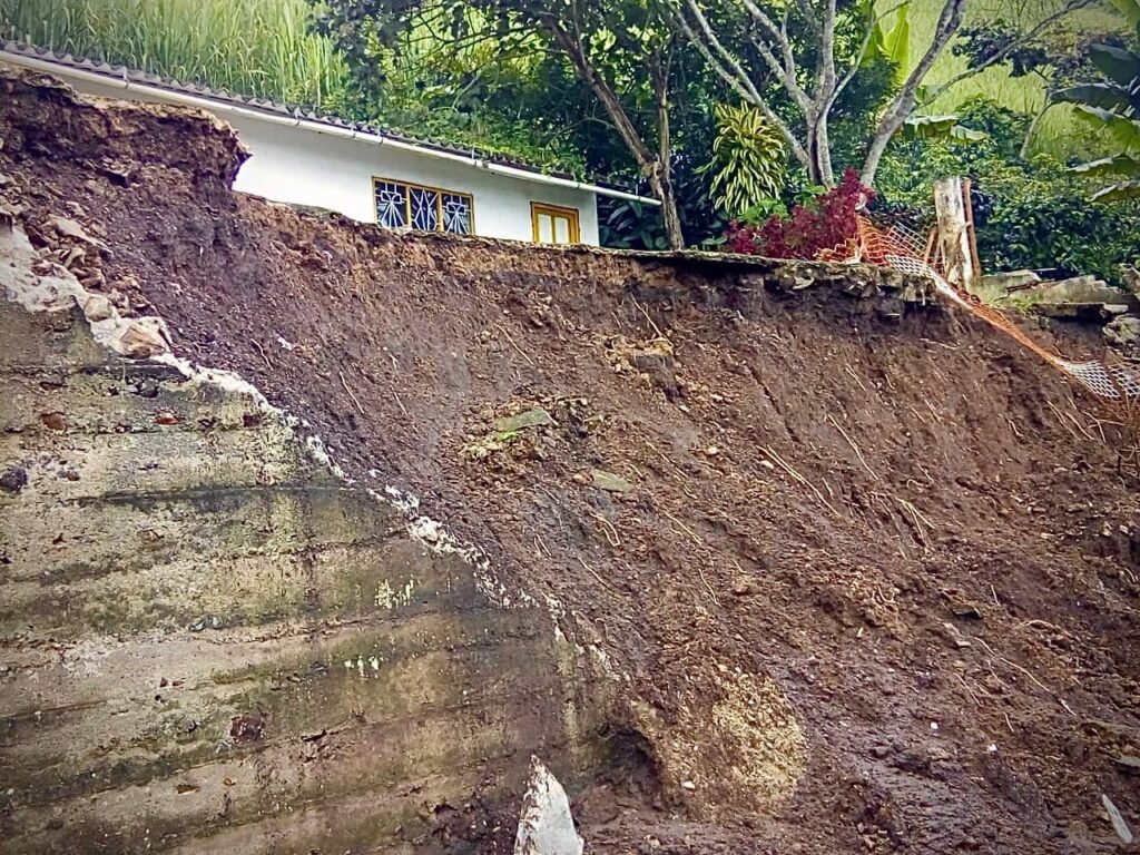 Finalmente se removió el deslizamiento del muro de contención de la escuela de la vereda San Antonio, corregimiento de Loma del Tambillo, que cayó sobre la vía de acceso hacia este sector.
