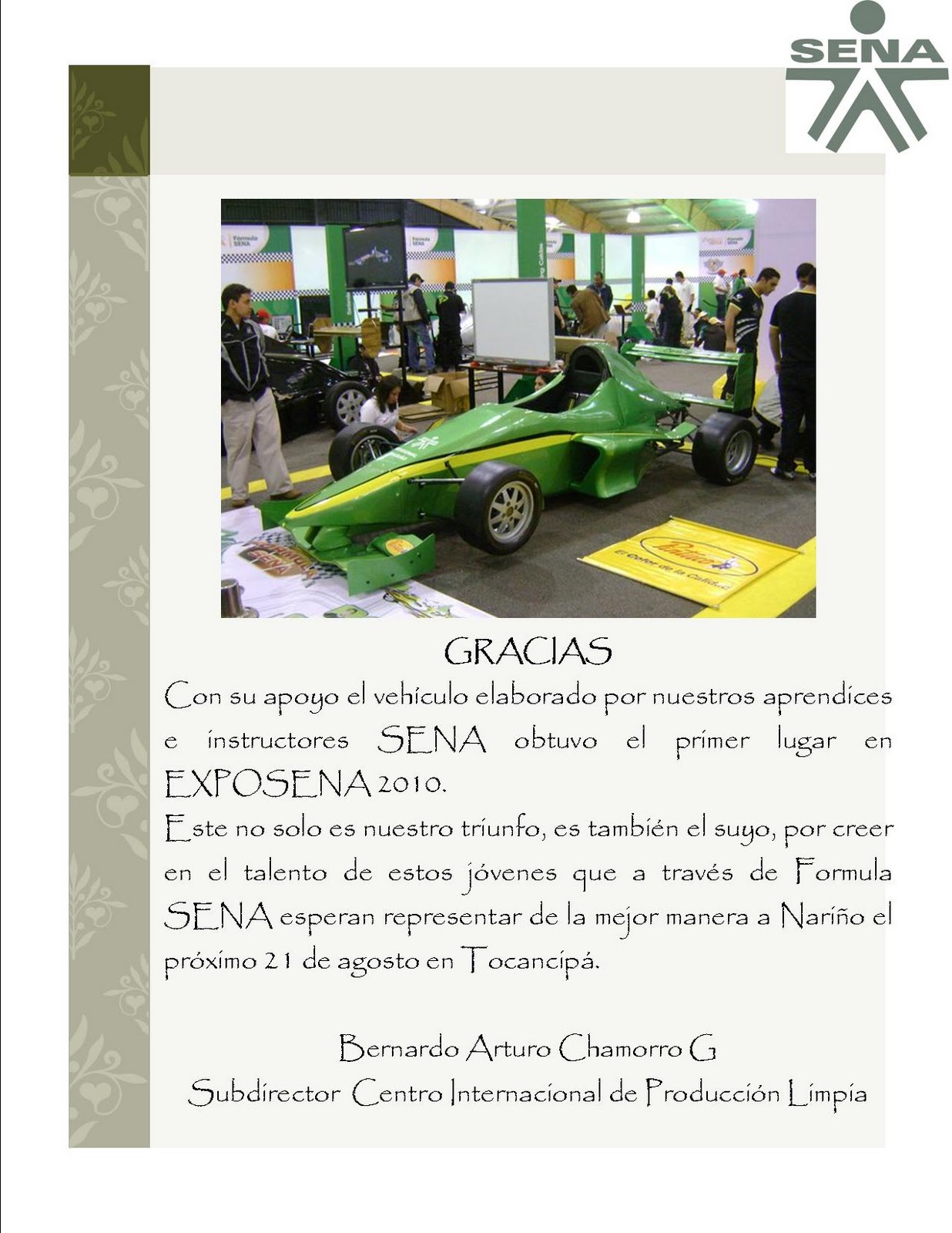 Los triunfadores participarán con el vehículo denominado fórmula Sena el 21 de agosto en el autódromo de Tocancipá.