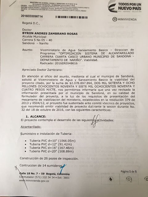 optimización del sistema de alcantarillado sobre la carrera 4 de Sandoná, fue