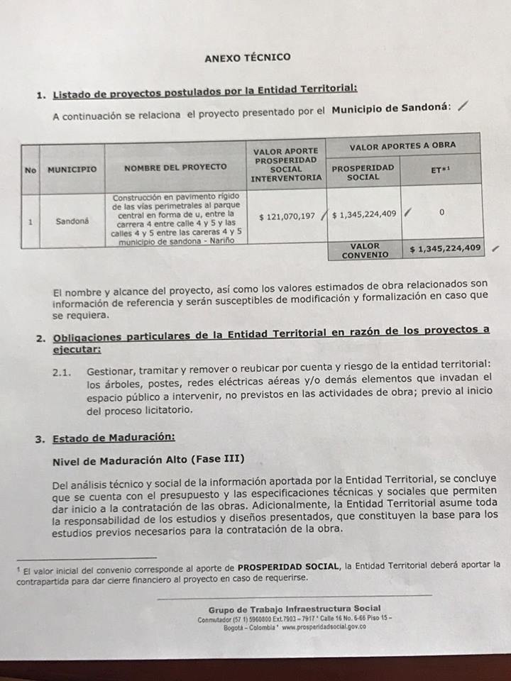 calles 4 y 5 entre las carreras 4 y 5 del municipio de Sandona. Por parte de la