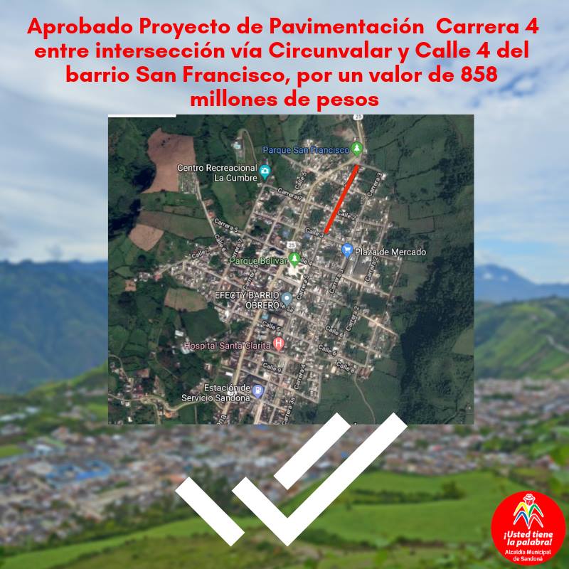 pesos fueron aprobados los recursos para la pavimentación de la carrera 4, barrio