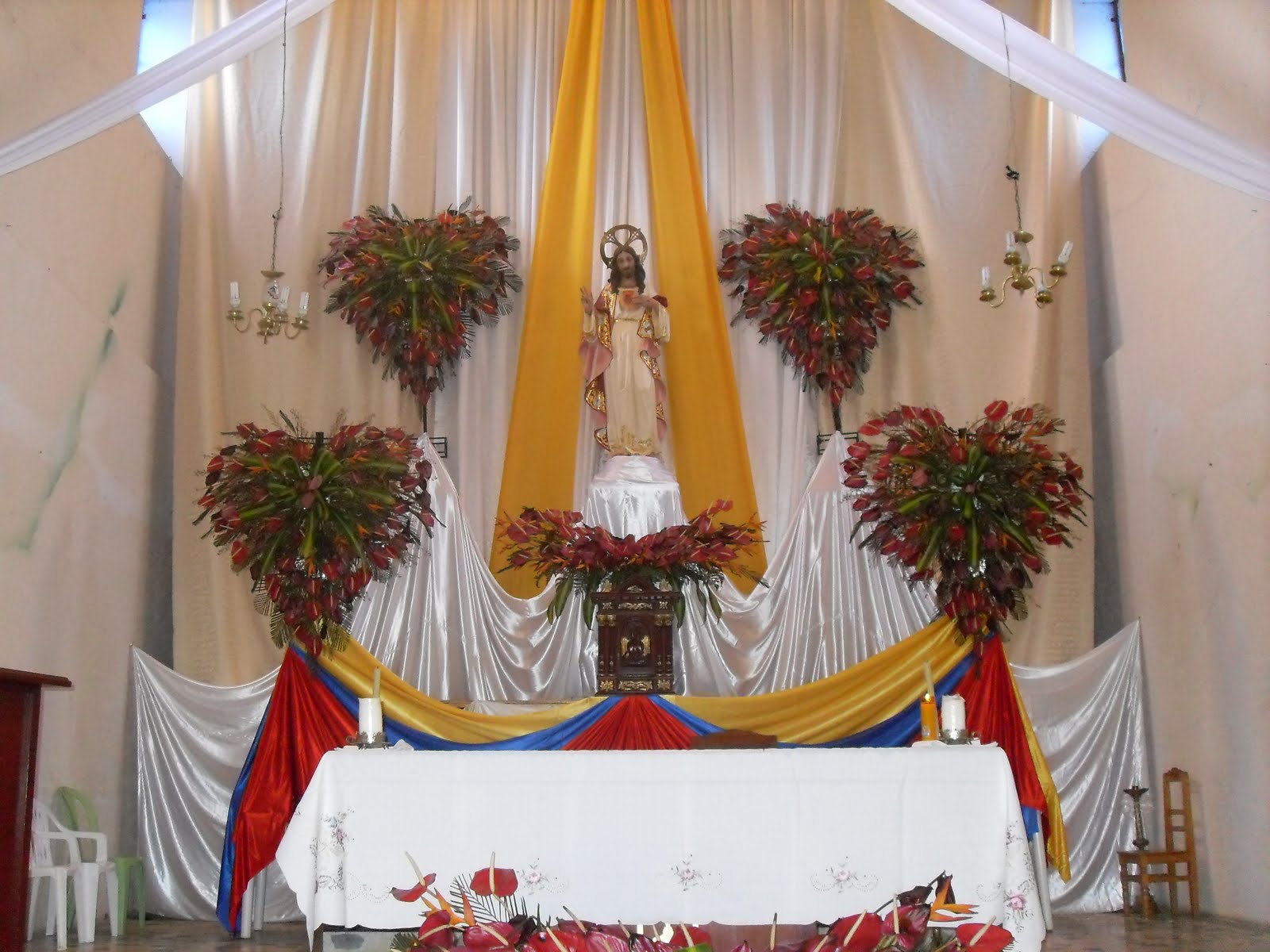 El templo parroquial fue decorado especialmente para esta ocasión con la colaboración de la junta de fiesteros.