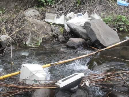 desechos como pantallas de computadores y otros elementos de oficina.
