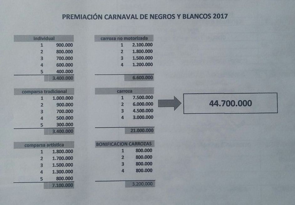 Añadió que el comité estableció la siguiente tabla de premios: