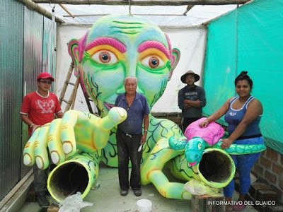 El miércoles en la mañana hicimos un recorrido por los talleres donde laboran los artesanos del carnaval sandoneño.