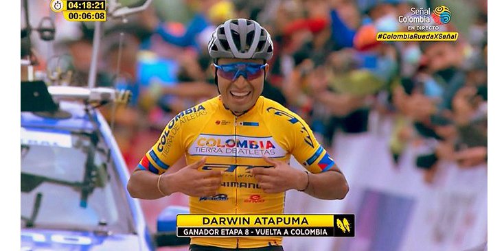 El ciclista nariñense Darwin Atapuma cobró revancha de las esquivas etapas del Giro de Italia 2016 y del Tour de Francia 2017 al ganar la octava etapa de la Vuelta a Colombia que se corrió este sábado entre Mariquita y el Alto del Vino sobre 140.4 kilómetros.