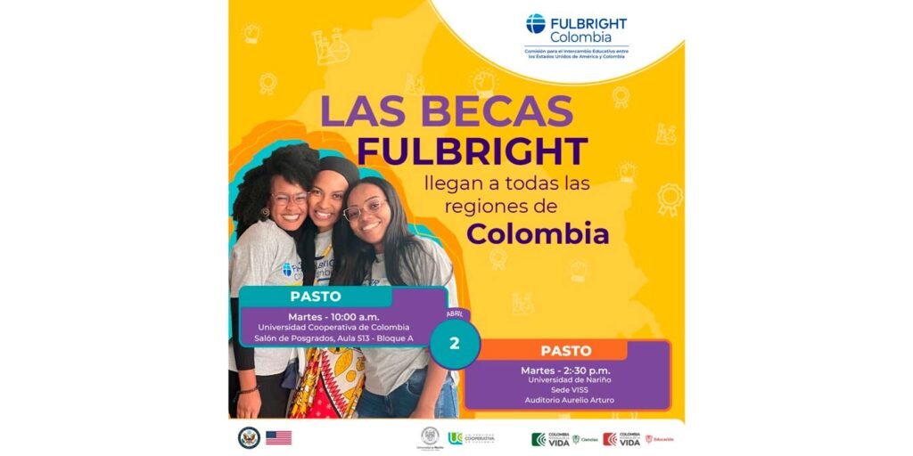Con el fin de ampliar las postulaciones desde todas las regiones del país, el equipo de Fulbright Colombia realizará una serie de charlas informativas presenciales, durante marzo y abril, en diferentes ciudades como: Cali, Manizales, Bucaramanga, Quibdó, San Andrés, Barranquilla, Pasto, Medellín y Leticia, en las cuales busca convocar profesionales de todas las regiones del país, que sean agentes de cambio y que tengan interés en contribuir a la solución de desafíos de su comunidad o región.