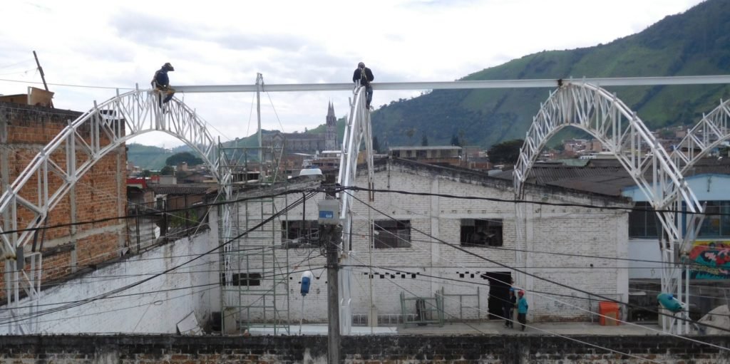 Durante esta semana se instala la estructura metálica de la cubierta de polideportivo de la Institución educativa Santo Tomás de Aquino de Sandoná, ubicado en la parte posterior del plantel sobre la calle 12.