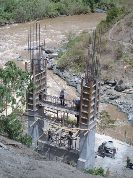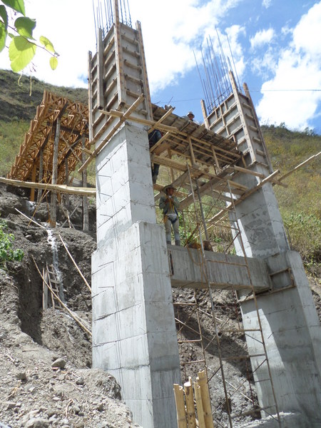 de pilares en el lado de Sandoná; lanzado de la estructura del tablero en una