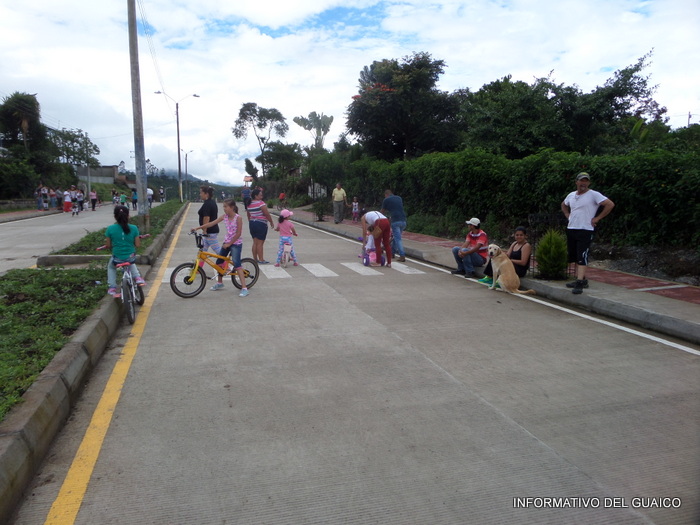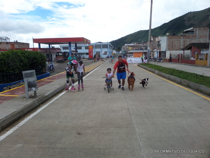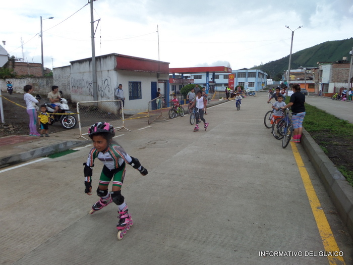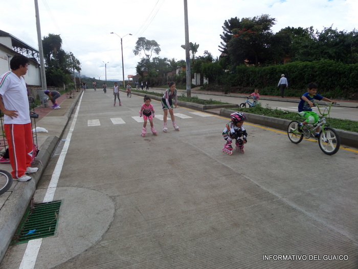 niñas y adultos en bicicletas y patines y otros a caminar o a trotar y unas