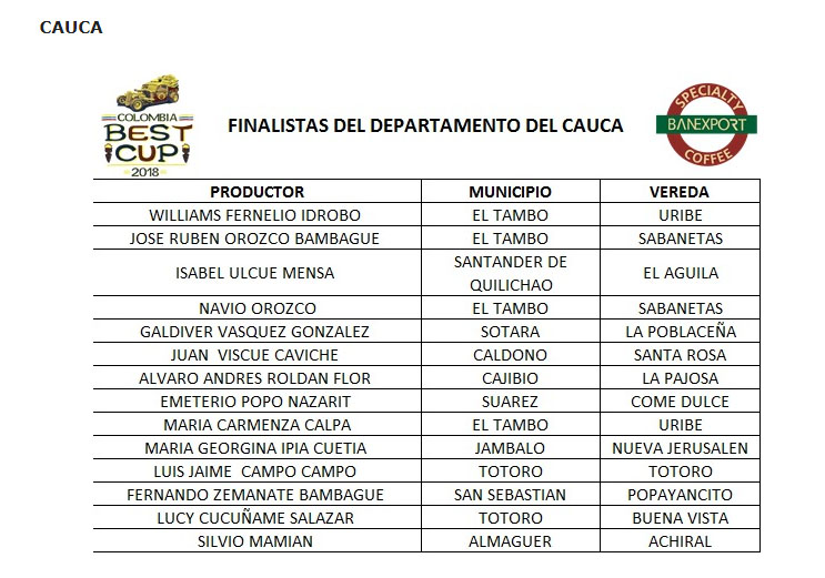 de Pasto, con el fin de seleccionar los 15 mejores microlotes de café, los