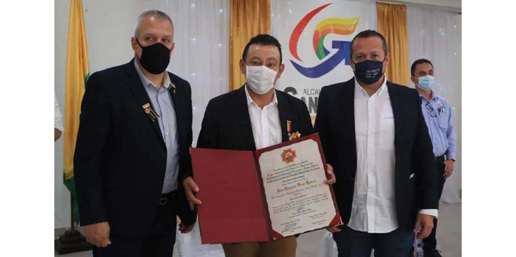 En el Municipio de San Pablo, norte de Nariño, El Presidente de la Cámara de Representantes de Colombia, Germán Blanco Álvarez y el representante de Nariño, Felipe Andrés Muñoz Delgado, entregaron la medalla de reconocimiento ‘Orden de la Democracia Simón Bolívar’, al Gobernador de Nariño por su trabajo y desempeño en el manejo de la pandemia del COVID-19 y el compromiso por el desarrollo de las comunidades en el Departamento.