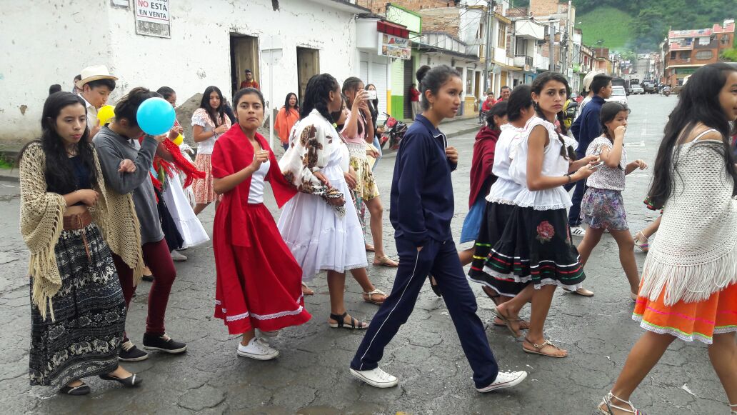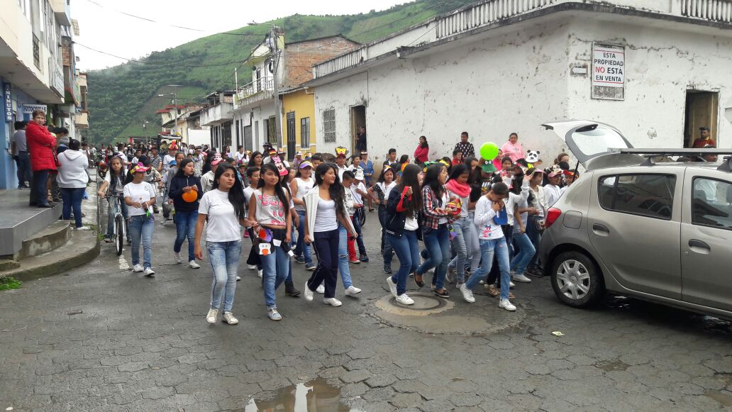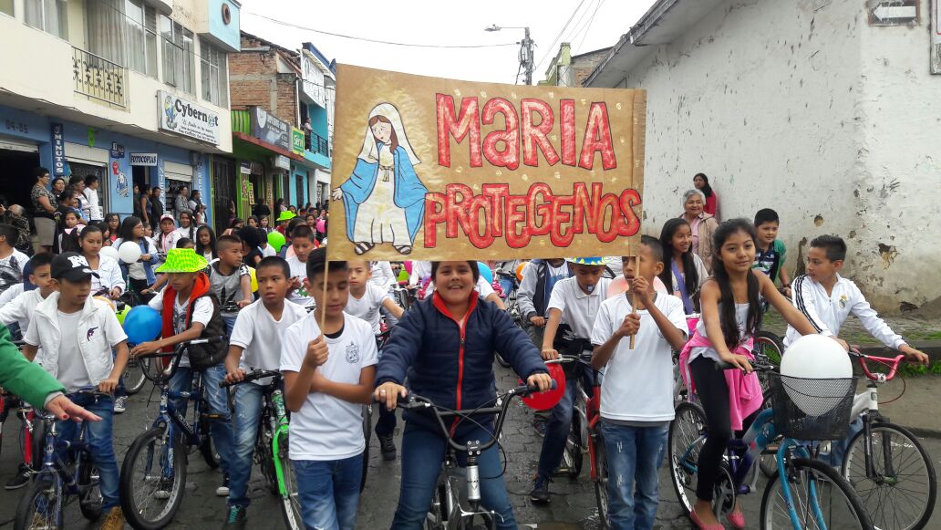 participación de estudiantes, docentes y directivos se desarrolló la “Caravana franciscana” por las céntricas calles de Sandoná este jueves, en el marco de
