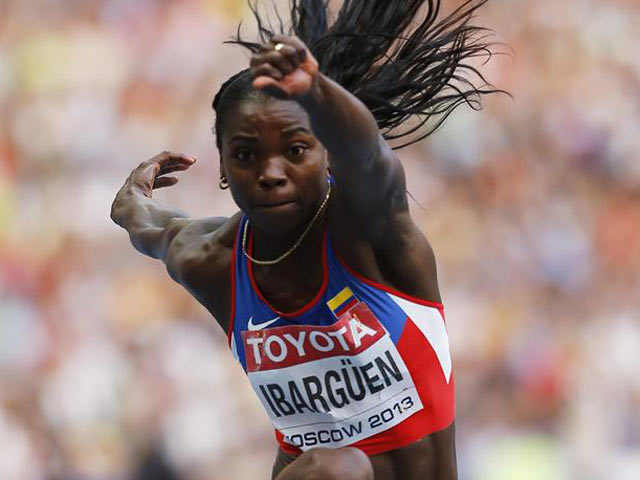 Olha Saladuha que saltó 14 metros 65 centímetros.
