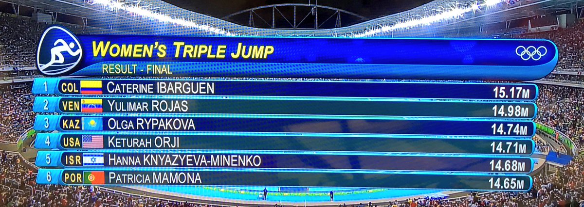 las posiciones en el salto triple de los Juegos Olímpicos.