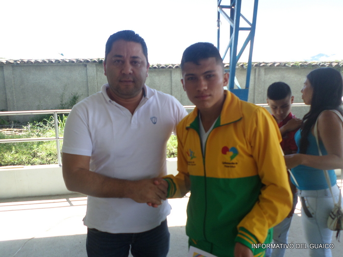 | El alcalde Byron Zambrano con John Alejandro Riaños, campeón nacional de atletismo adaptado |