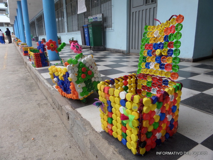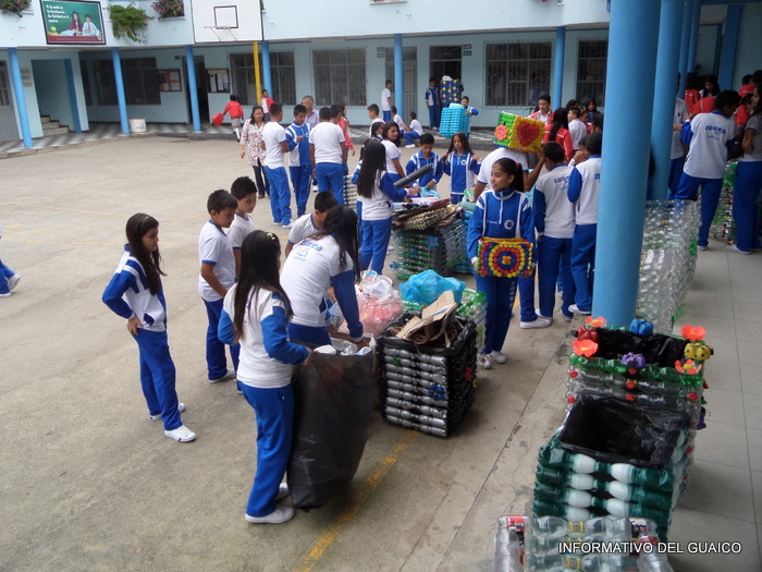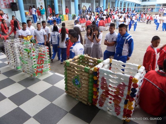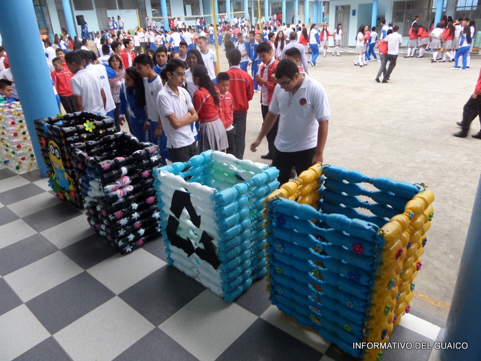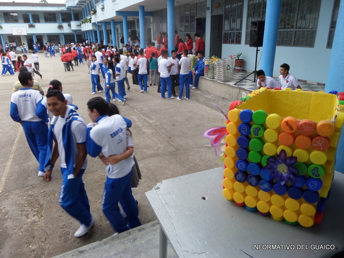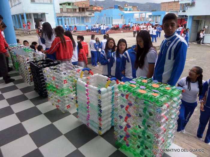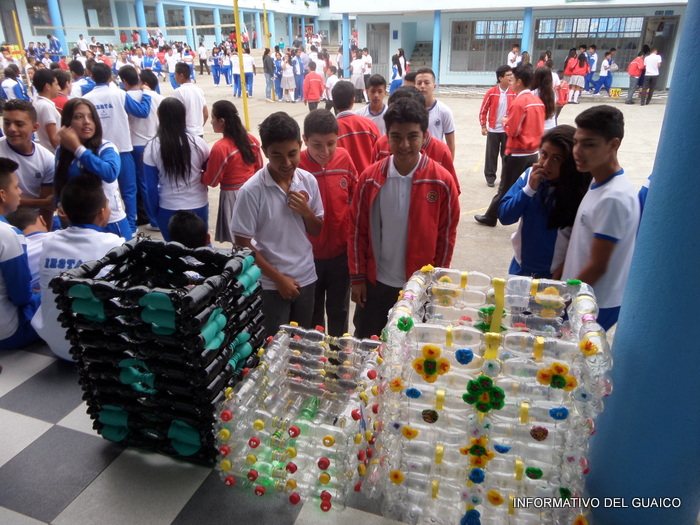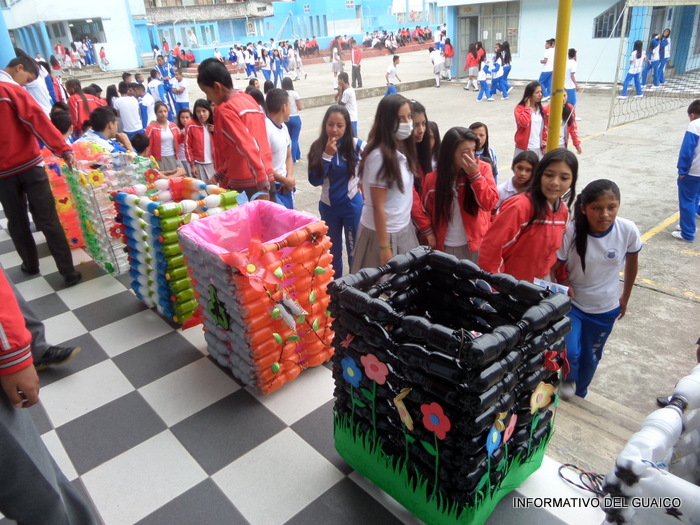 tapas plásticas de gaseosas y los estudiantes de los grados, séptimo al undécimo