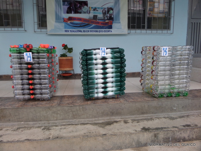 botellas plásticas con las cuales elaboraron recipientes, varios de ellos con