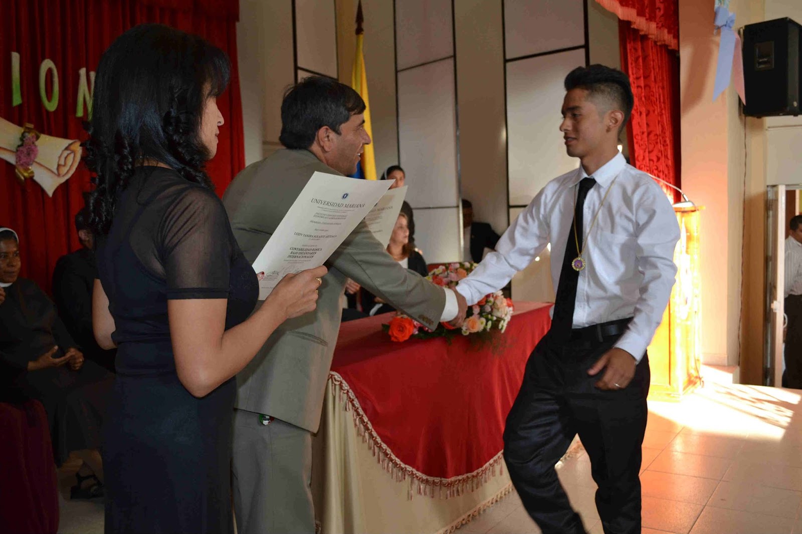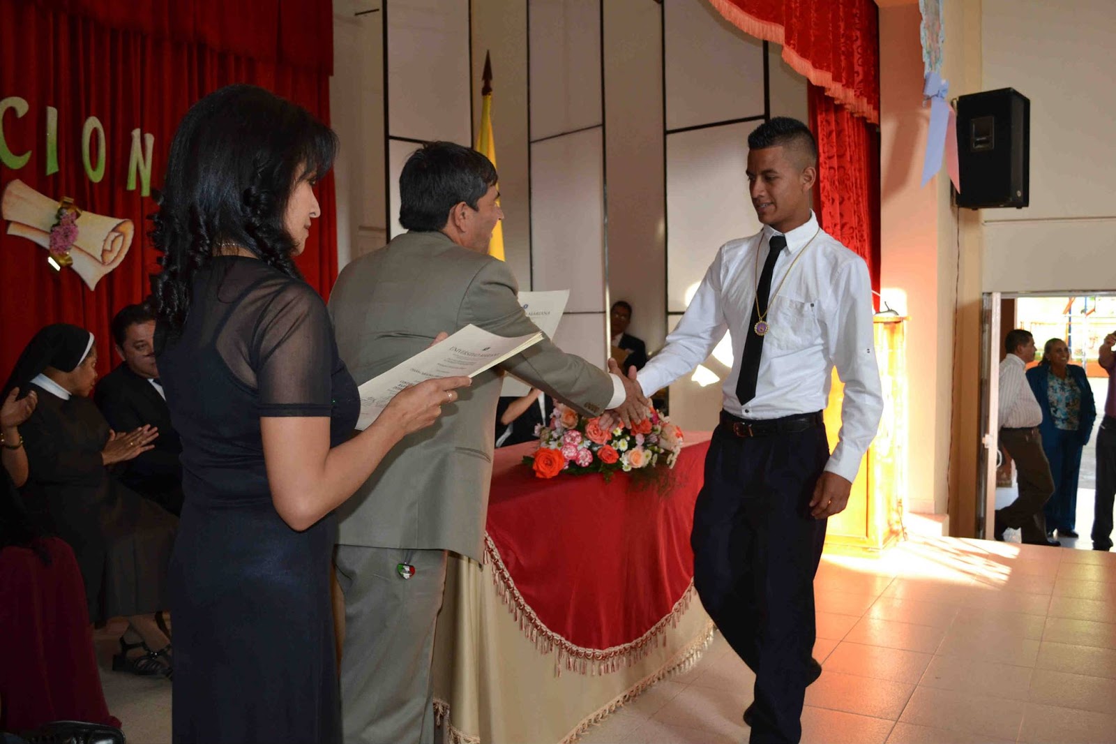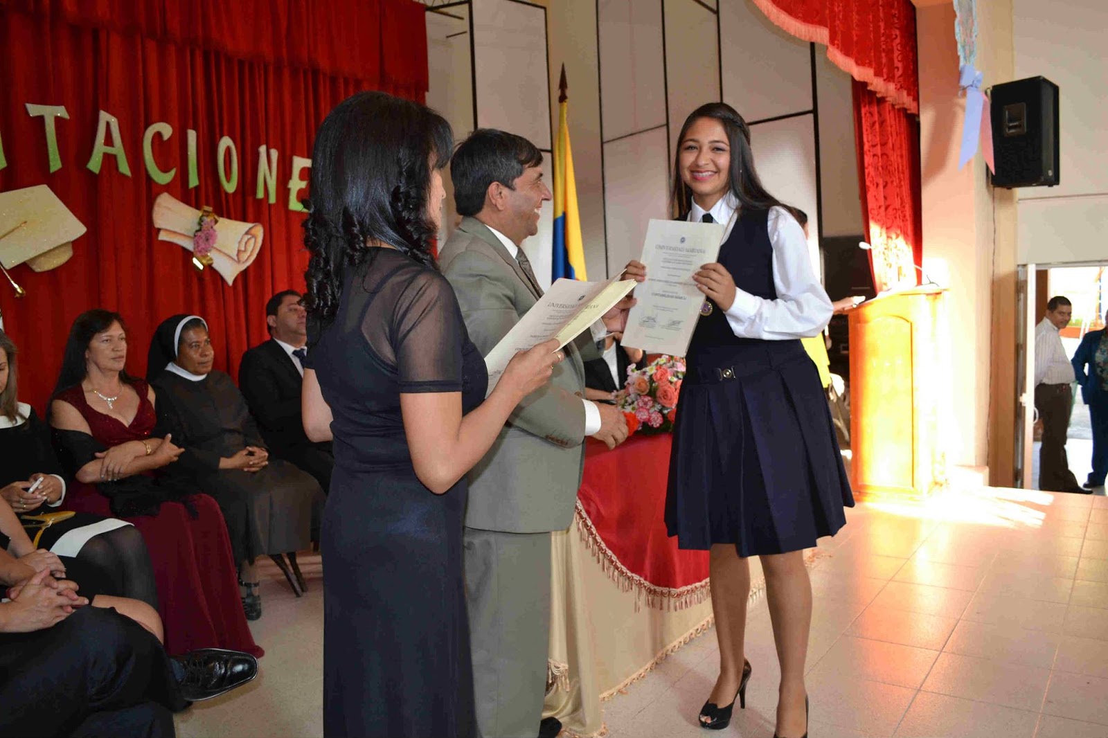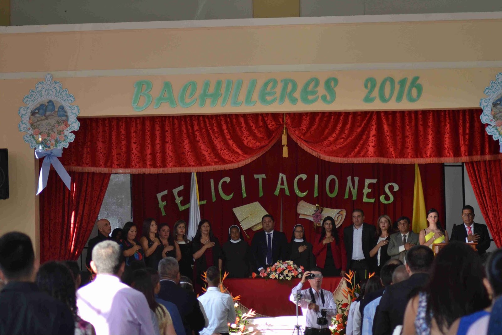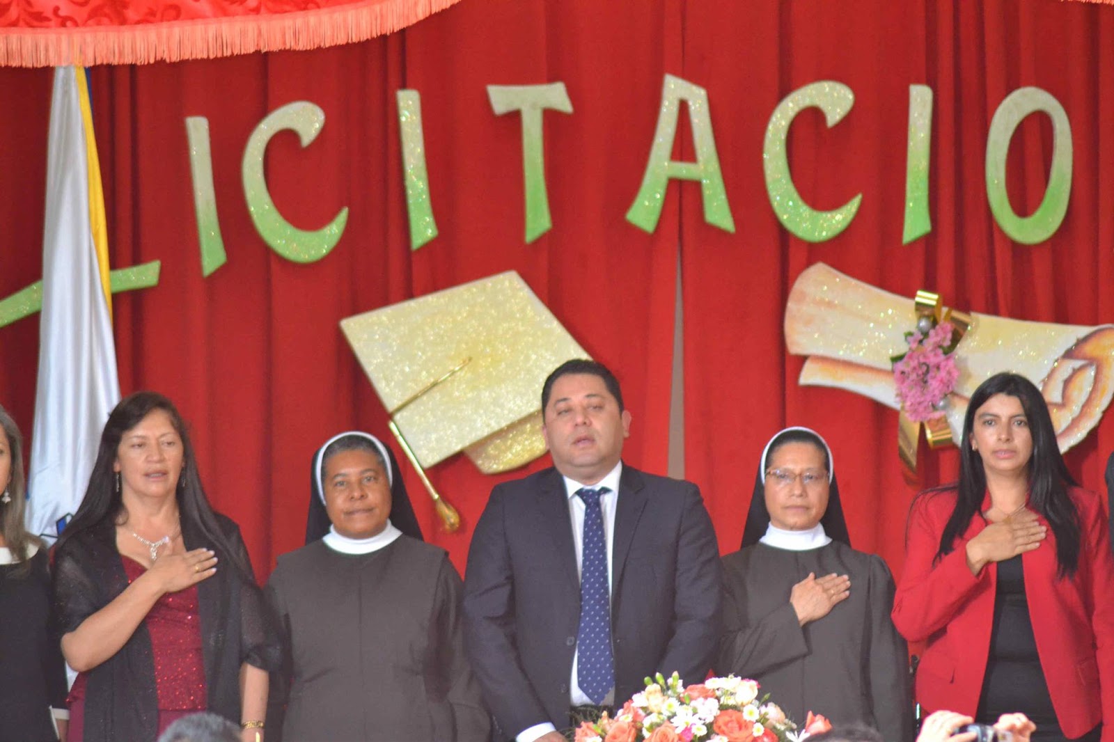mesa directiva, prosiguió con el desfile de graduandos, el himno nacional, la