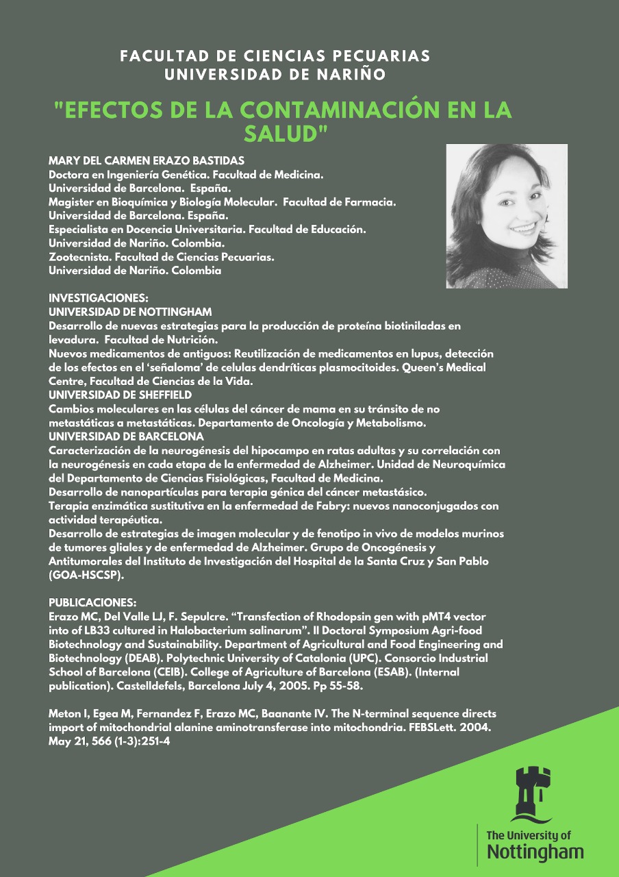 estudios de pregrado en zootecnia en la universidad de Nariño y hace 18 años