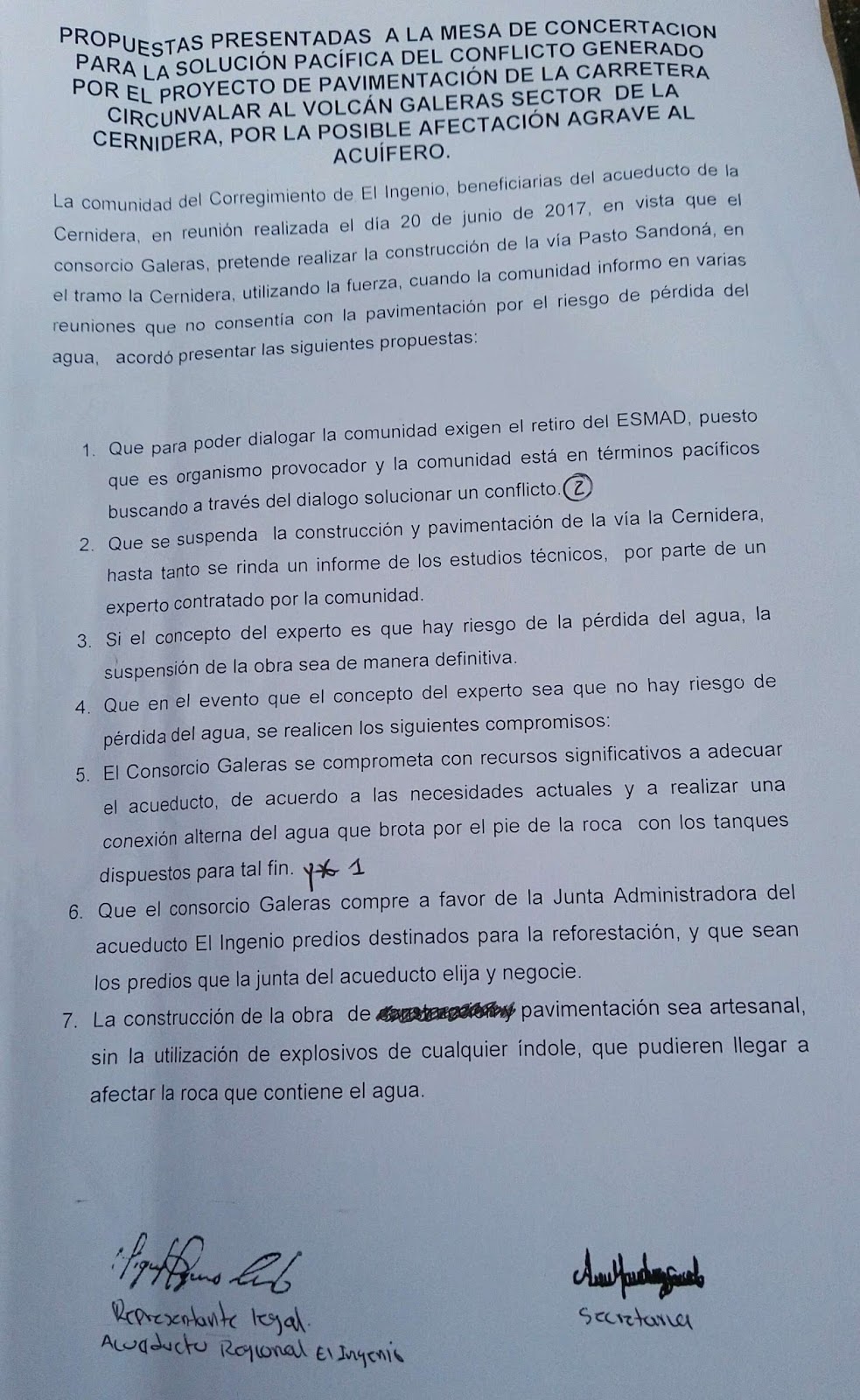 consorcio Galeras compre a favor de la Junta Administradora del acueducto El