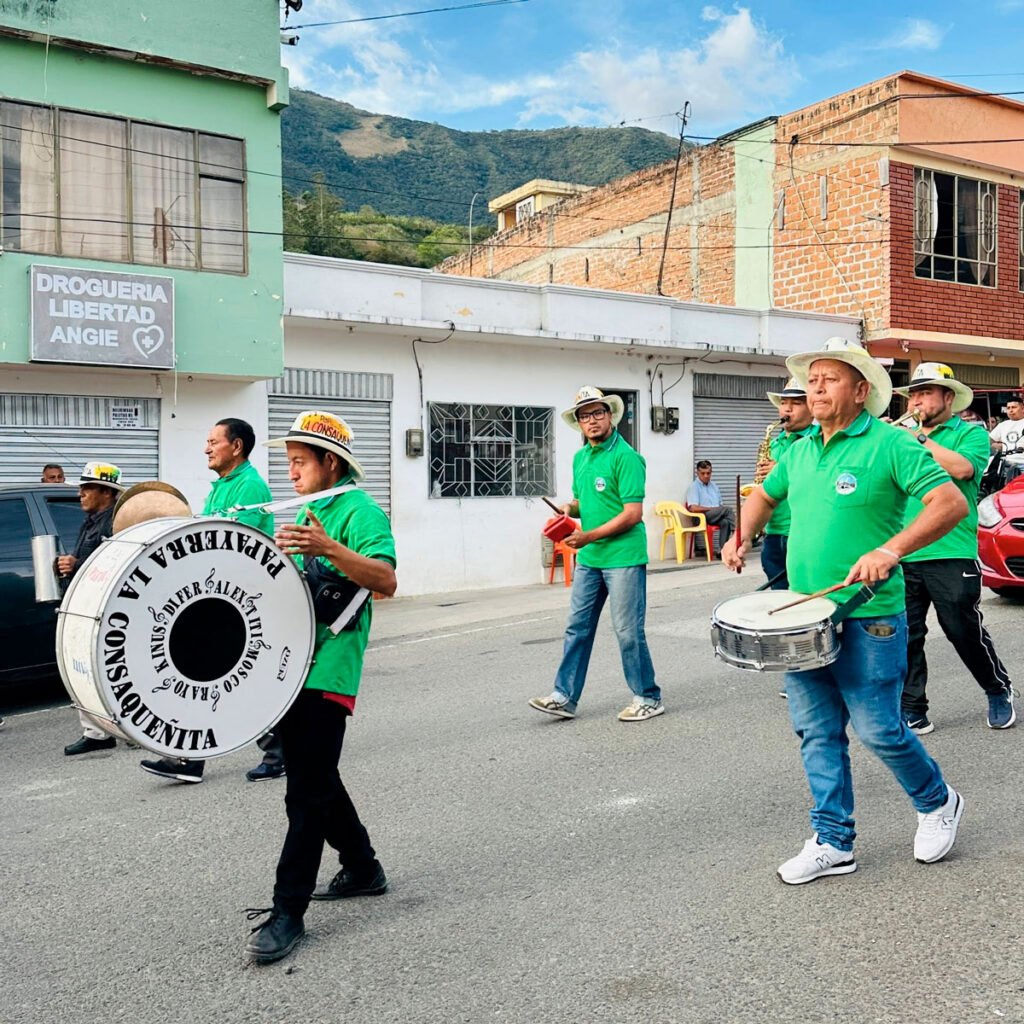 La ceremonia inició en el sector del cementerio parroquial, lugar donde decenas de personas se reunieron para saludar al joven militar y acompañarlo hasta el templo de Nuestra Señora del Tránsito, se celebró una Eucaristía de acción de gracias por su vida y libertad. La Papayera la Consaqueñita acompaño el desfile.