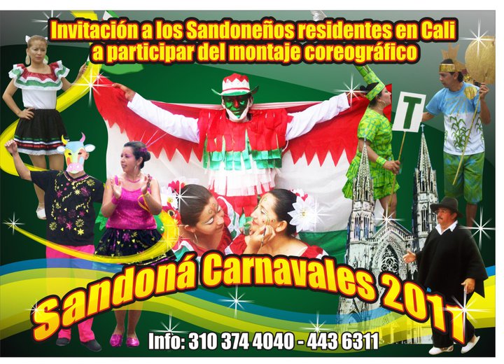 Harold David Fajardo líder de la colonia sandoneña residente en Cali realiza la primera convocatoria a todos los integrantes de este grupo poblacional. Aprovechando la tecnología Fajardo adelanta la convocatoria por facebook, una de las más importantes redes sociales que existen en la actualidad, a todos sus paisanos para iniciar los ensayos del montaje coreográfico con el fin de realizar una nueva presentación en los próximos carnavales de Sandoná.