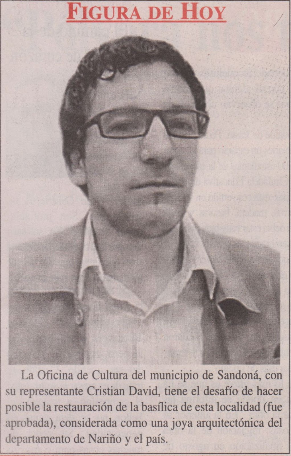 de cultura de Sandoná Cristian David fue destacado como “Figura de hoy” por el
