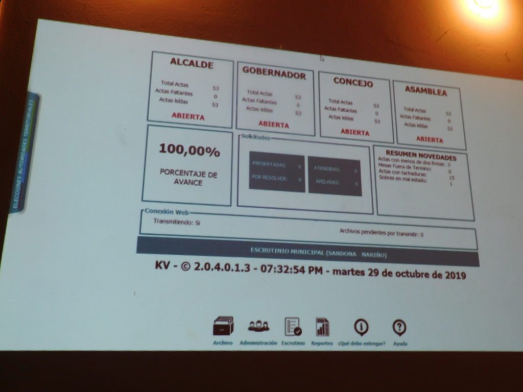 La notaria María Carlota Jaramillo, integrante de la Comisión escrutadora explicó que los escrutinios se demoraron porque en algunas mesas de votación se presentaron inconsistencias razón por la cual recomendó a las personas que se desempeñan como jurados electorales realizar el ejercicio con amor.
