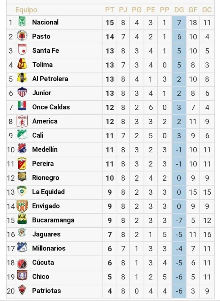 Con este resultado el Deportivo Pasto conservó el segundo lugar con 14 puntos (un partido menos), mientras que La Equidad están en la casilla 13 con 9 unidades.