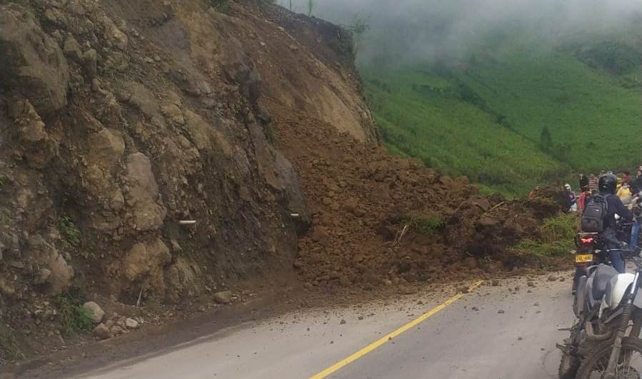 Un derrumbe que se presentó este miércoles en la tarde en la vereda Piarán taponó la vía Circunvalar Galeras entre los municipios de Consacá y Sandoná.
