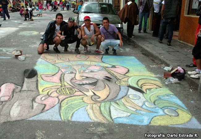 medio del arte y usando la imaginación, con el color de las tizas sobre en el