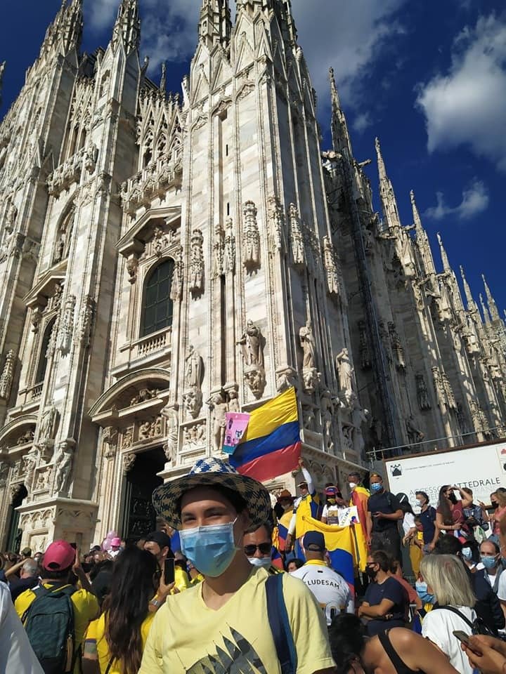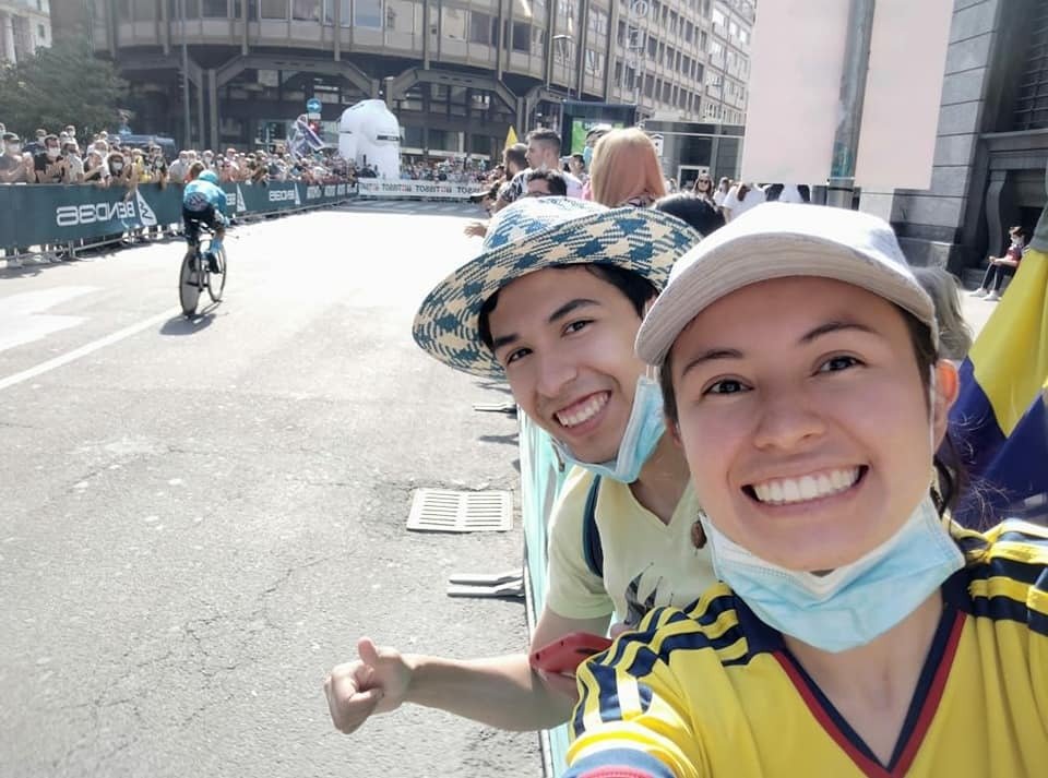 El estudiante Nicolás Chaves González fue uno de varios colombianos que este domingo estuvo en Milán en la final del Giro de Italia que ganó el ciclista zipaquireño Egan Bernal.