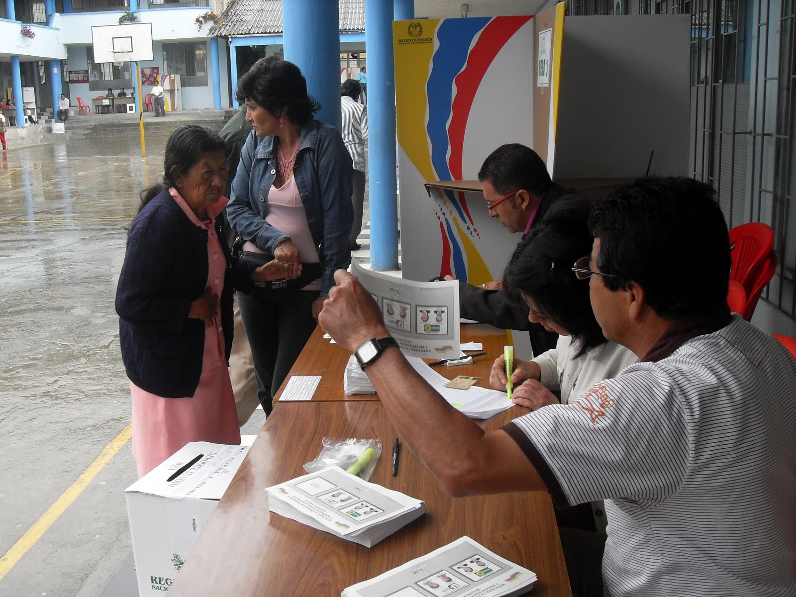 Las elecciones presidenciales en Sandoná transcurren en medio de la lluvia y mucho frío.De acuerdo a los jurados de votación de las mesas instaladas en el instituto Santo Tomás de Aquino muy pocas personas se han acercado a las urnas durante las dos primeras horas del debate electoral.