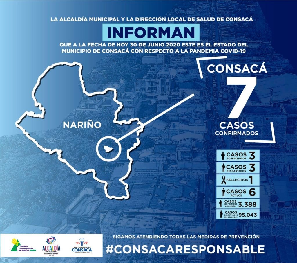El alcalde de Consacá Carlos Alberto Jaramillo informó este martes que el Instituto Departamental de Salud de Nariño le reportó la ocurrencia seis nuevos casos de covid-19 en este territorio.