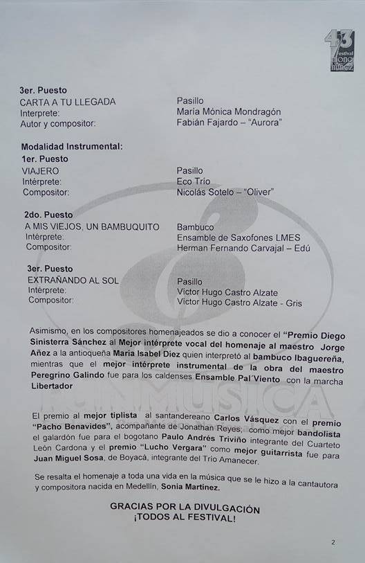 instrumental del 43 Festival de Música Andina Colombiana Mono Núñez que se
