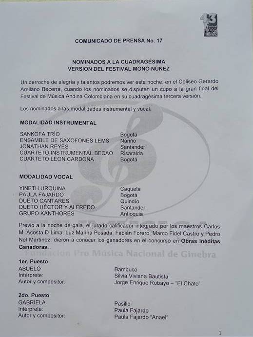 andina colombiana, en su cuadragésima tercera versión.”