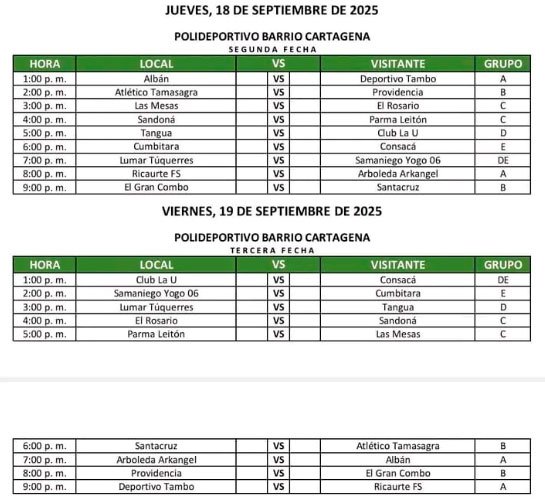 Según el sorteo realizado por la organización, Sandoná quedó ubicado en el grupo C, junto a los equipos de Las Mesas, El Rosario y Parma Leitón.