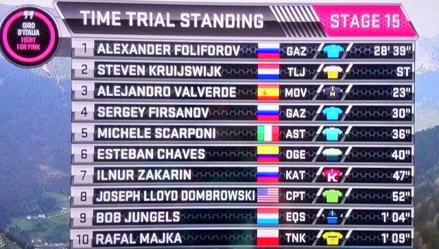 Foliforov con un tiempo de 28 minutos 39 segundos, con segundo lugar del líder Kruijswijk