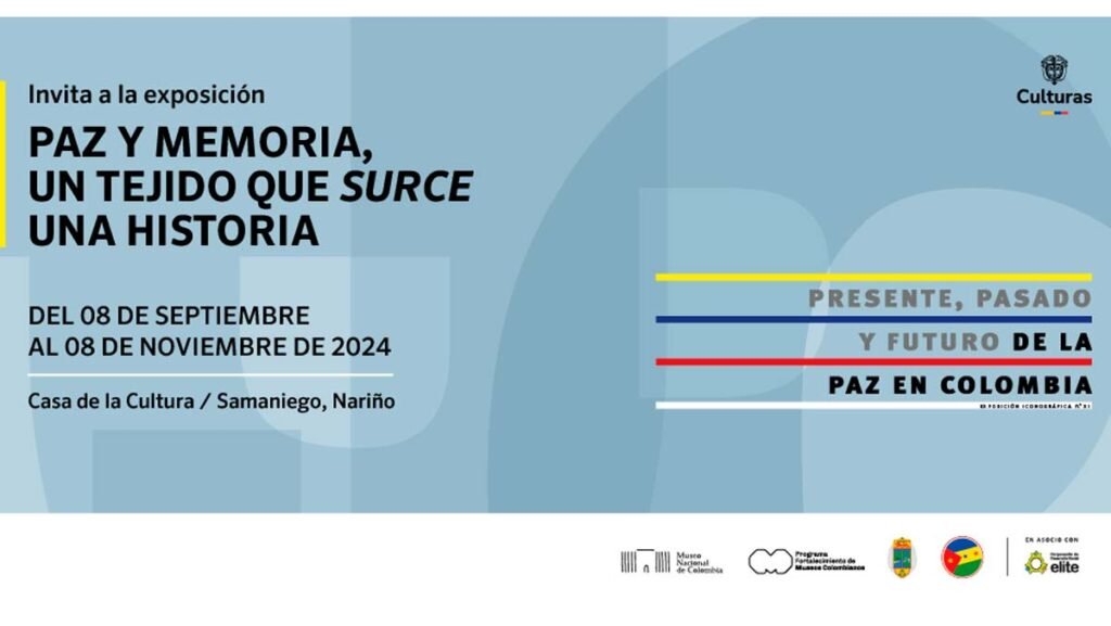La exposición Paz y memoria, un tejido que surce una historia, iniciará la Semana por la Paz y se presentará en el Instituto de Cultura de Samaniego, junto con la exposición itinerante del Museo Nacional de Colombia, Presente, pasado y futuro de la paz en Colombia.