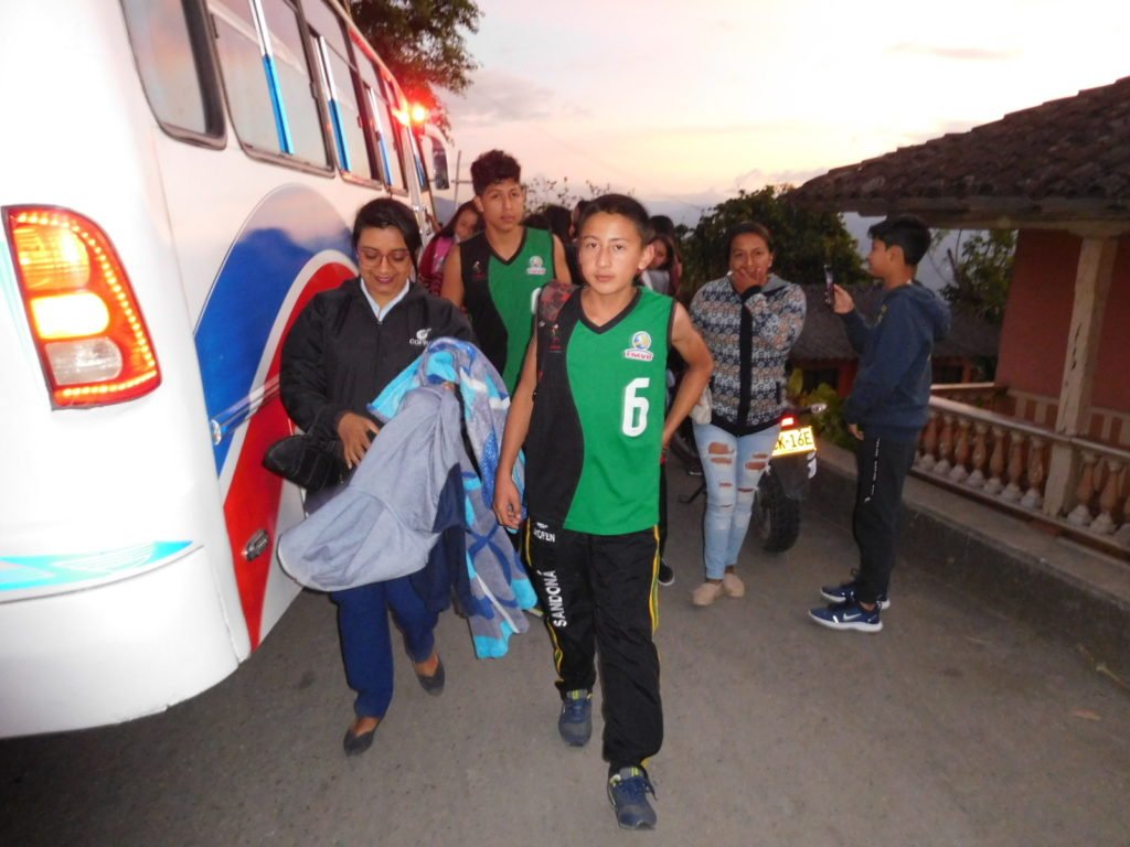 Este viernes en horas de la tarde familiares recibieron a los niños y jóvenes integrantes de los equipos prejuvenil y juvenil de voleibol que se coronaron campeones, en el marco de los Juegos Supérate Intercolegiados.