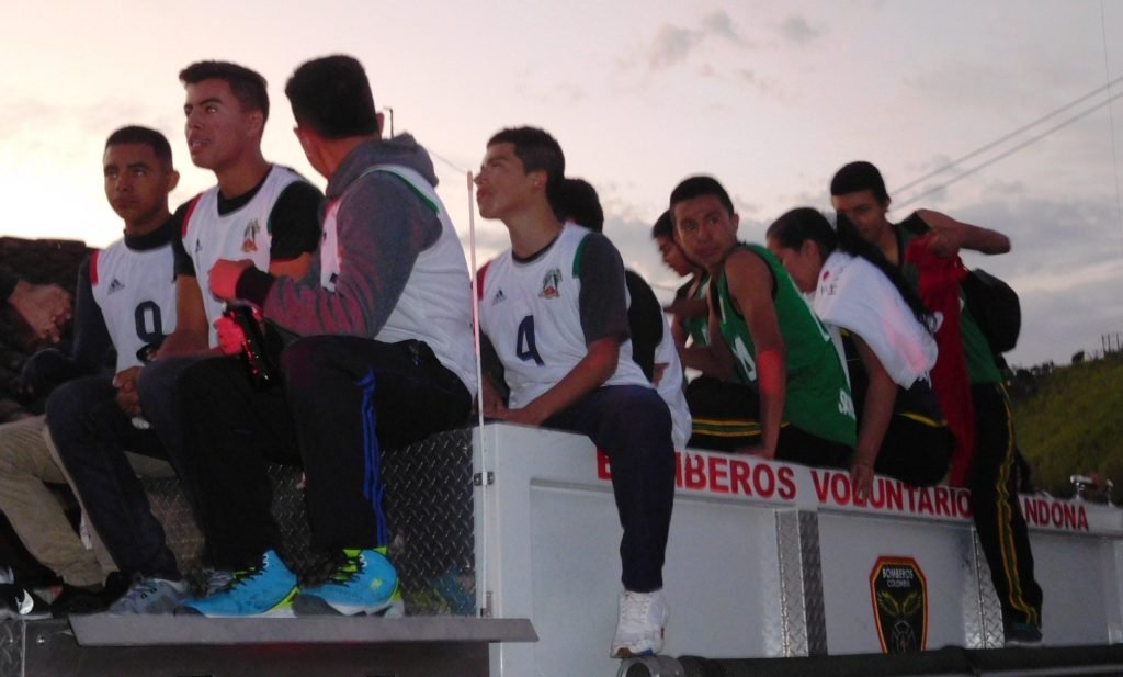 Los familiares se desplazaron hasta el sector de la Altamira, a 1 kilómetro del sector urbano, sobre la vía Circunvalar Galeras y desde este lugar acompañaron a la caravana de motos y carros, encabezada por el carro de bomberos con los campeones y amenizada por la Papayera Santa Cecilia.