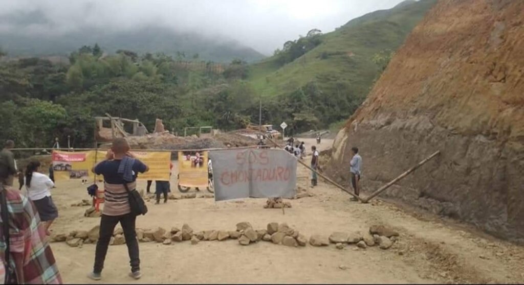 Las familias damnificadas del municipio de Rosas, Cauca, por deslizamiento de tierra del pasado 9 de enero, realizaron una protesta en la vereda Chontaduro, en la entrada de las obras de la variante provisional de Rosas.