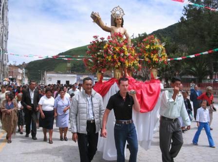 con la imagen del santo acompañada por los fiesteros y devotos.
