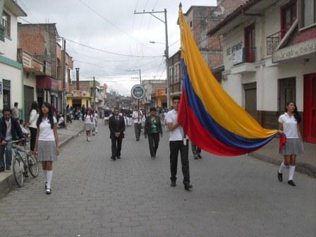 los estudiantes de primaria y secundaria y los docentes desfilaron por las principales calles