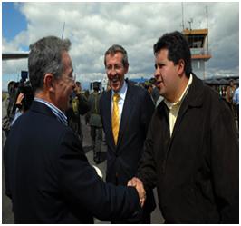 Este dialogo entre el presidente Uribe y el director de la Aerocivil se registró este martes en la capital de la república, en la entrega de obras al nuevo aeropuerto de Bogotá.