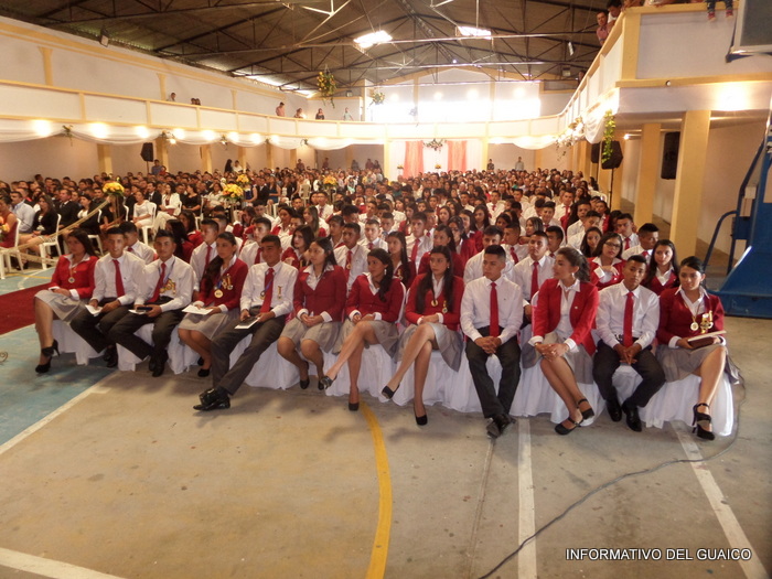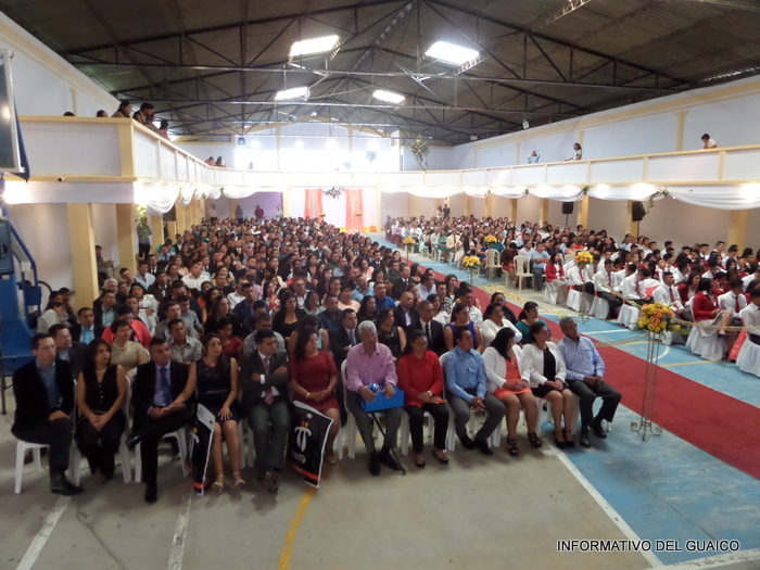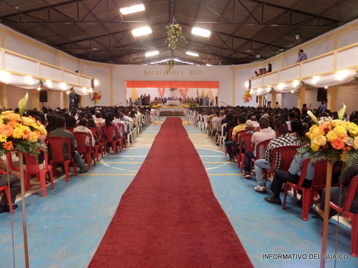 A diferencia de los años anteriores los nuevos bachilleres se ubicaron en el costado izquierdo del teatro y sus padres de familia o acudientes lo hicieron en el costado derecho.