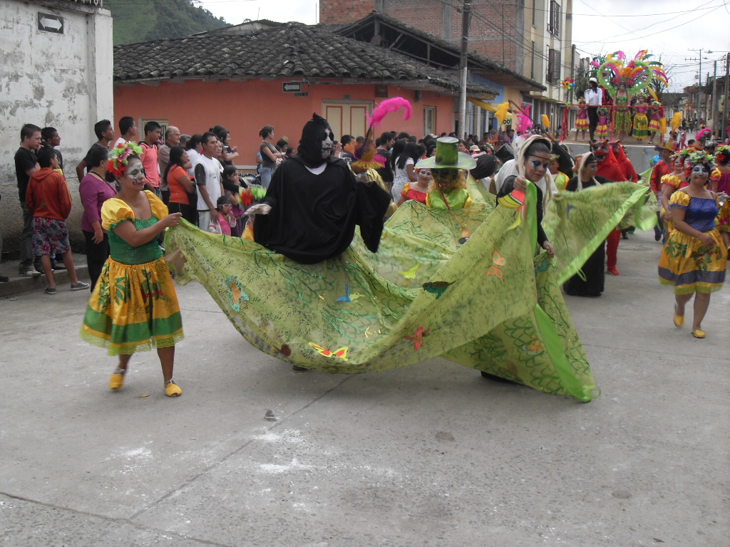 La administración municipal encabezó el desfile con la representación de la novela de televisión “La Pola”, la fundación “Pote Mideros” participó con su banda musical, el grupo de Papá Lolo representó a Don Trino Alvárez, luego desfiló la cooperativa financiera Cofinal con representaciones de la danza de los paneleros, la danza del cuy, los danzantes de Males, el Triángulo del Recuerdo, los guaqueros y el proceso del sombrero.